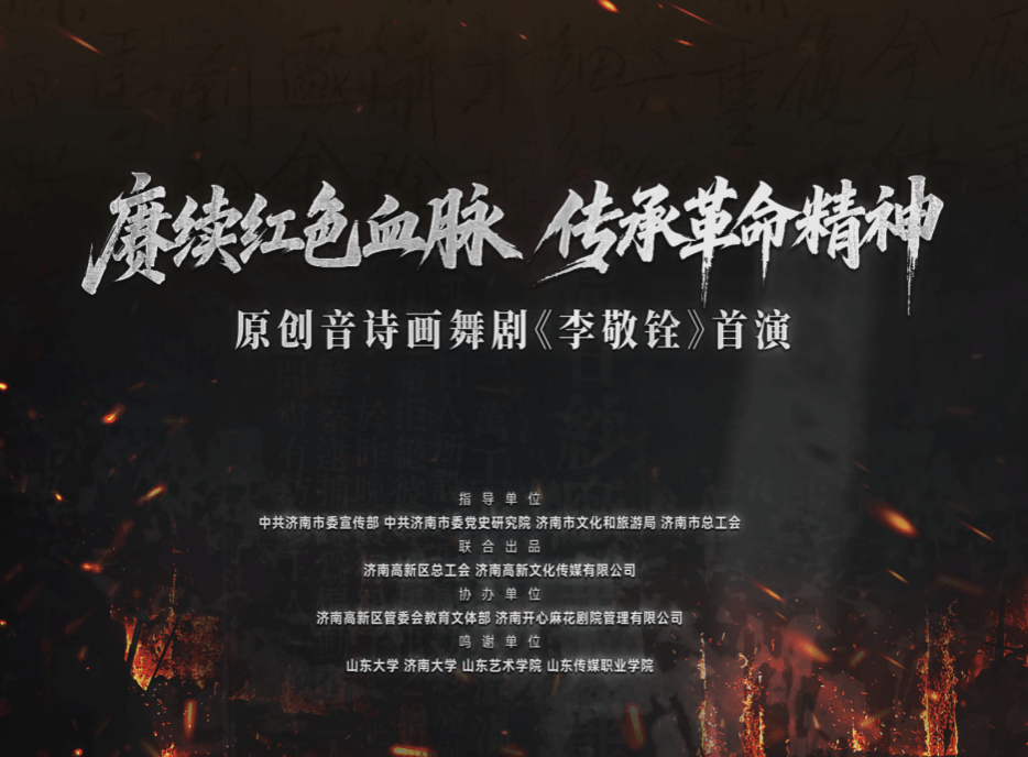9月24日至25日,济南市委宣传部、济南市委党史研究院、济南市文化和旅游局、济南市总工会指导,济南市高新区总工会出品的大型原创音诗画舞剧《李敬铨》在济南面向社会成功首演。这场融合了舞蹈与话剧的艺术盛宴,以“以舞为笔,绘就壮丽诗篇”的独特思政形式引发热烈反响,爱济南、新黄河、海报新闻、闪电新闻、大众新闻等客户端相继进行报道,收获社会各界高度评价与领导一致赞誉。
