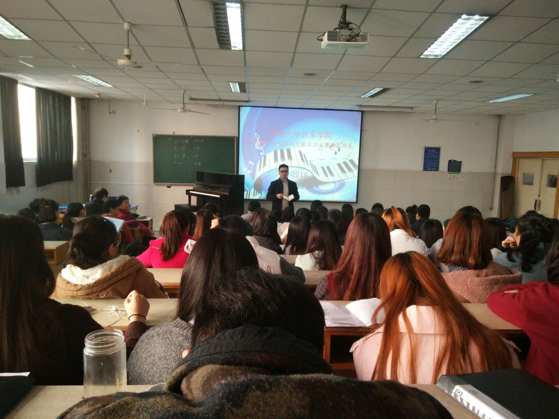 活动由留钕铜主任主持,suncitygroup太阳集团党委副书记、副院长崔英静,教学管理办公室主任郑歆为本次基本功比赛的获奖学生颁奖;suncitygroup太阳集团王今、常肖、田浩、林佩蕾、闵小敏等五位老师分别从音教的五大专业方向给同学们作了学业基本要求和学业规划指导,同学们都很认真的听取。最后是由五大项比赛的获奖学生进行技能展演,现场不时地响起雷鸣掌声,这也是低年级学生对本次获奖的师哥师姐的充分肯定。