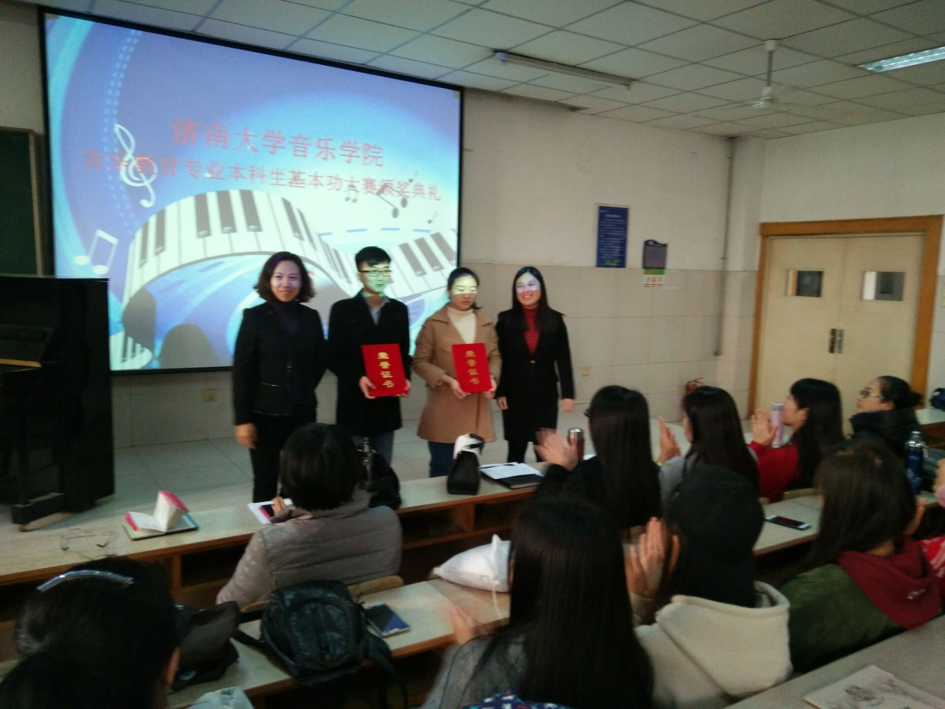 11月15日 suncitygroup太阳集团音乐教育系全体师生在第二教室103举行了本次比赛的颁奖典礼活动。活动分为三个内容:为基本功比赛的成绩优异者颁发荣誉证书;专业教师对学生展示情况进行点评;进行成绩优异者的技能展演。