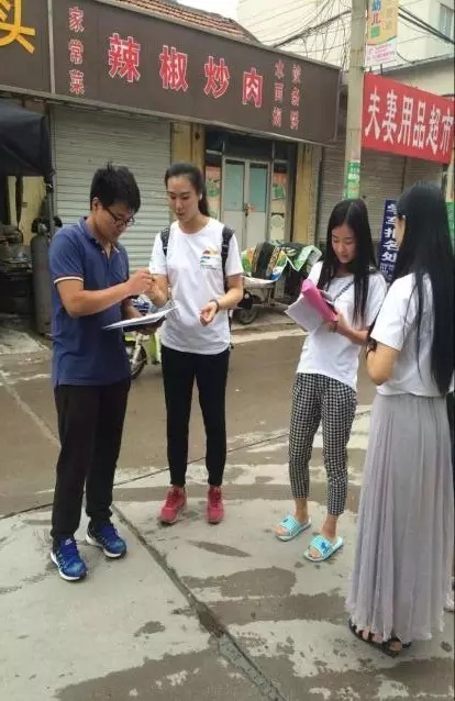 志愿者们在学校附近的小区进行调研,主要针对“新市民”的影响及未来发展问题的问卷调查。