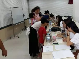 2016年7月9号和10号,是我们新市民招生和面试的两天。志愿者们有条不紊的进行自己的工作,招生进行的很顺利。10号上午,我们的志愿者备课说课,为了给小朋友们上好每一堂课,小老师们都很努力。