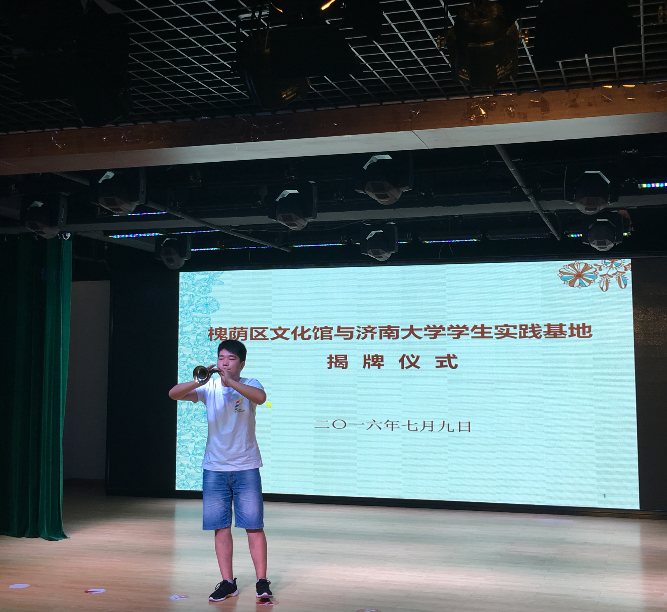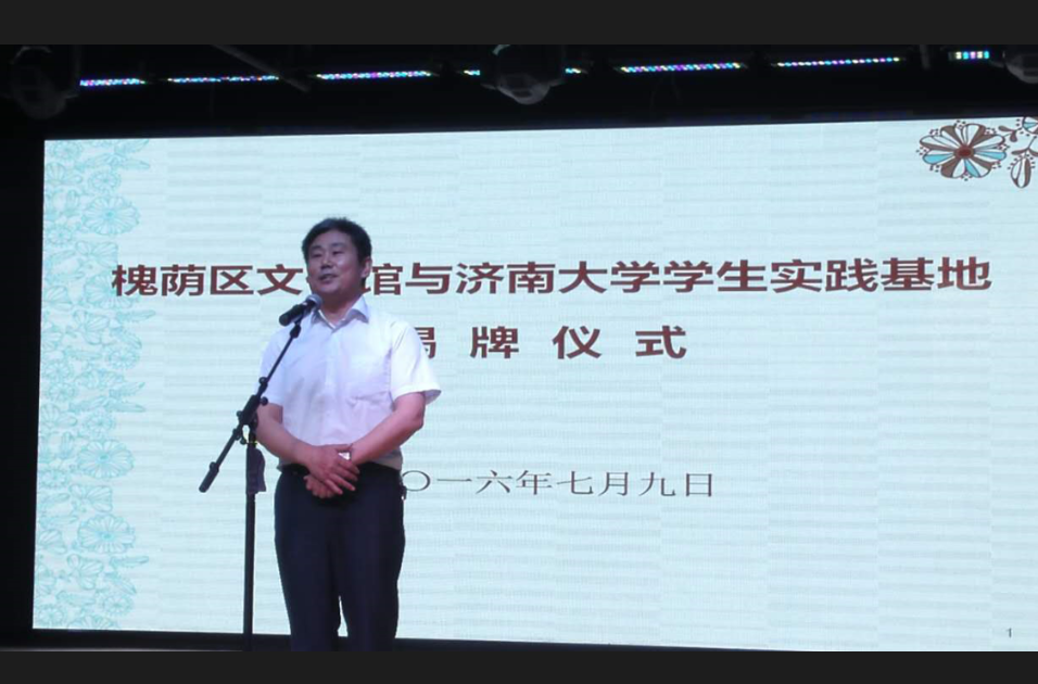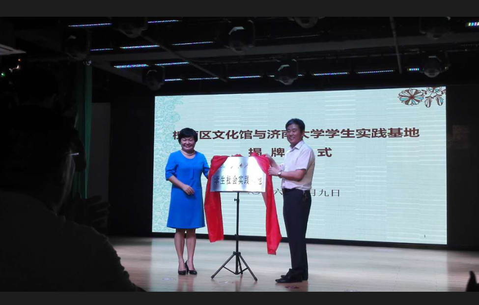 7月9日上午九点,济南市槐荫区文化馆与suncitygroup太阳官方网站学生社会实践基地揭牌仪式在槐荫区文化馆多功能演艺厅举行,出席揭牌仪式的有槐荫区委常委、宣传部部长周敬、槐荫区文化局局长刘兆勇、suncitygroup太阳集团党委书记赵道会、副院长董智渊、团委书记高学德。参加揭牌仪式的还有suncitygroup太阳集团学生和社区群众队伍代表。
