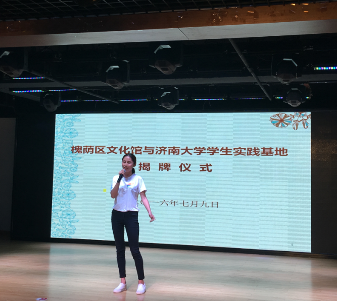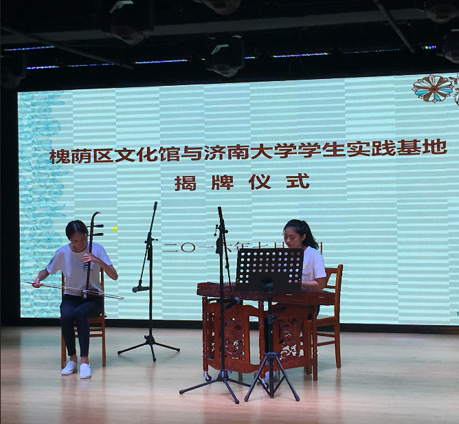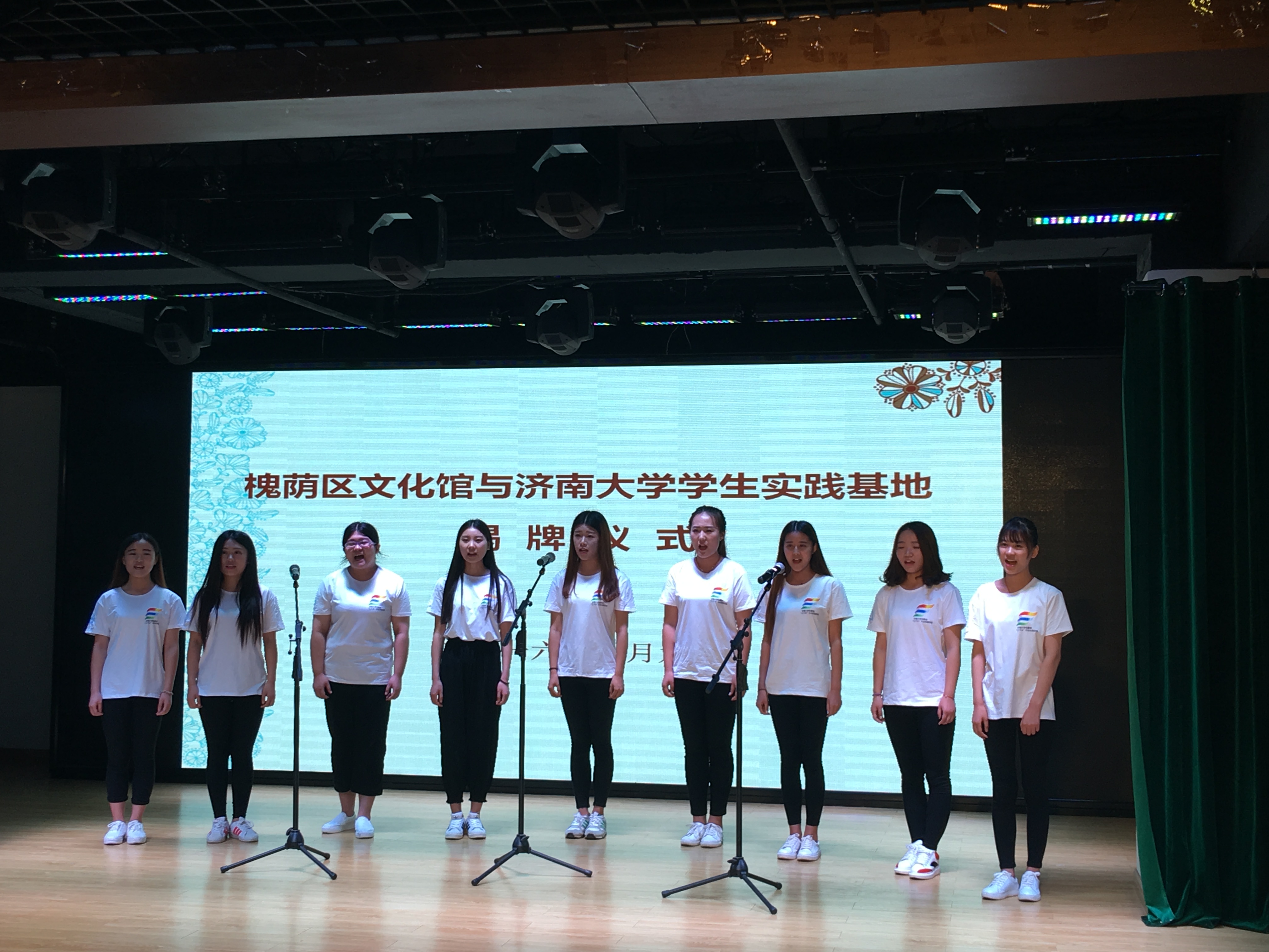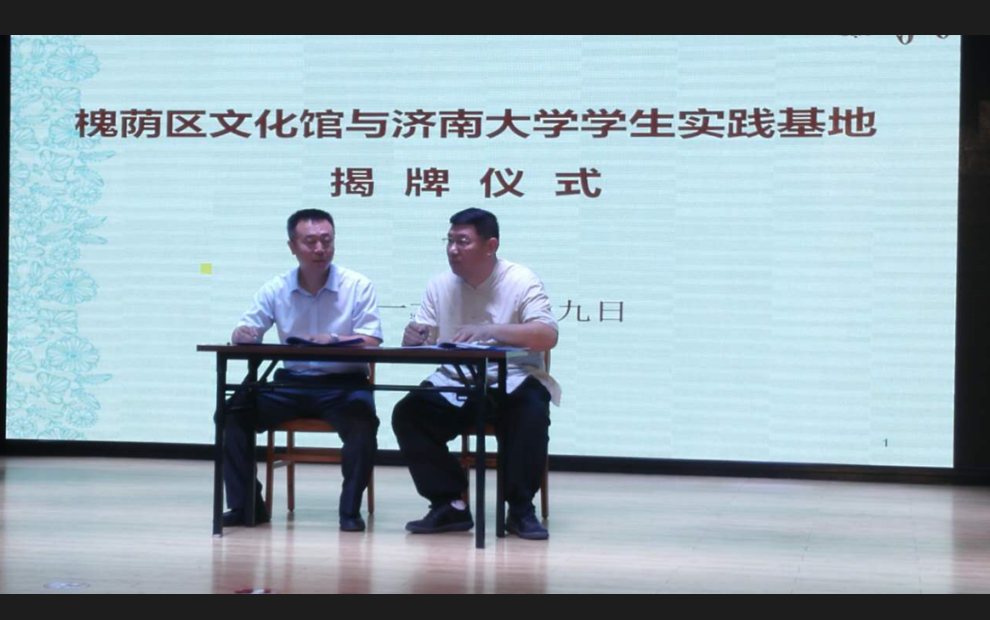仪式由槐荫区文化馆馆长孙学雷主持。首先刘兆勇局长致欢迎词,他介绍了槐荫区近几年在文化建设方面所取得的显著成绩,表达了对此实践活动的关注与支持。赵道会书记介绍了suncitygroup太阳集团的发展情况并预祝实践基地工作顺利开展。董智渊副院长与刘兆勇局长签订协议,并由赵道会书记、周敬部长共同为学生实践基地揭牌。之后,周敬部长发表了热情洋溢的讲话,对槐荫文化惠民工程和文化事业发展进行了讲解,并对suncitygroup太阳集团志愿服务工作表达了期待与感谢。随后suncitygroup太阳集团学生献上精彩的演出。最后实践学生与社区群众队伍就暑期社会实践文化服务进槐荫的具体日程进行交流和对接。