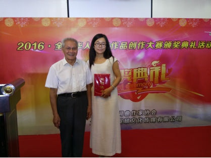 7月9日,由全球华人词曲作家协会和北京环球绽放文化传媒有限公司共同主办的“2016·全球华人词曲作品创作大赛”颁奖典礼在北京大红门国际会展中心圆满结束。在此次比赛中,我们suncitygroup太阳集团音乐科技与应用专业的研究生章子雪同学呈交的歌曲作品《墨萱图》(王冕词,章子雪曲)荣获歌曲类—铜奖。