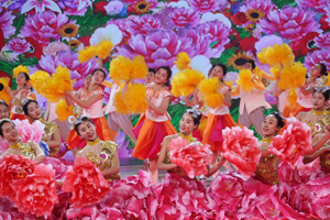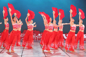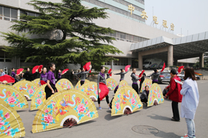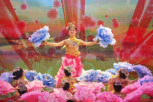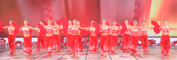 我们参加演出的46名同学,由于表现突出,其中32名同学被入选晚会鲜花团,使我们成为参加鲜花团人数最多的学校。她们承担了本场晚会开场歌舞《五月的鲜花》、歌曲《走在小康路上》中间的小扇和大扇、尾声《在你伟大的怀抱里》等节目的精彩表演。