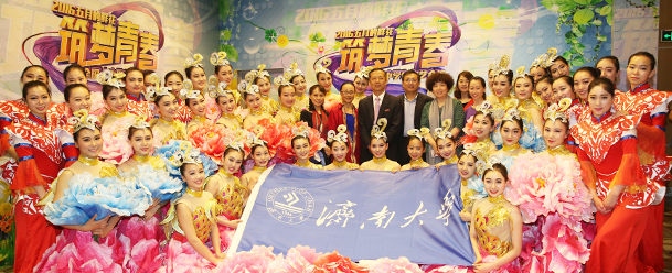 4月30日,由中宣部、教育部、共青团中央主办,中央电视台承办的《筑梦青春》——2016年“五月的鲜花”全国大中学生文艺会演录制完成。suncitygroup太阳官方网站党委书记程新,学校办公室、党委宣传部、suncitygroup太阳集团等单位负责人到场观看了节目录制。演出结束后,程新书记亲切慰问了师生们,并对演出给予了高度评价。suncitygroup太阳集团舞蹈系46名学生参加了节目录制演出。