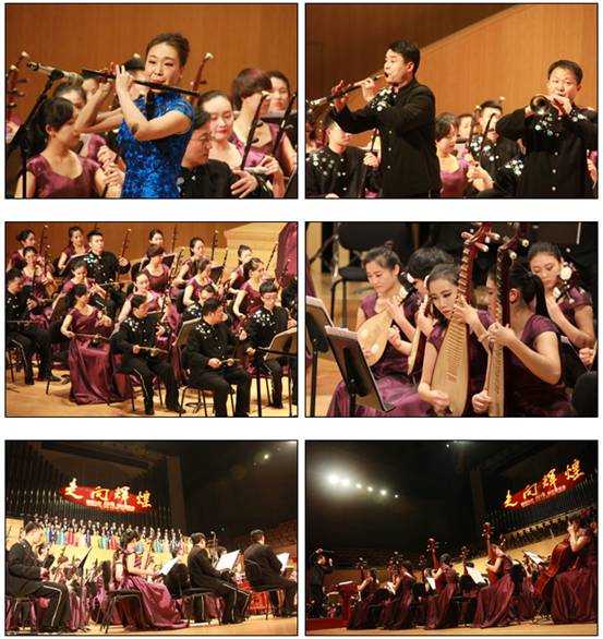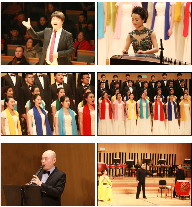 音乐会上,我们“山东泉城合唱团”带来的合唱《在灿烂阳光下》、《红旗颂》主题鲜明,感情真挚,表达了人们对党的无限忠诚和对祖国的无比热爱。夏金瓯老师表演的古筝与合唱《菊花台》,张鑫老师表演的单簧管与合唱《思念》用独特的表演方式演绎了两首大众传唱的优秀歌曲;由高健、杨阳两位兼职教授与suncitygroup太阳集团李东方教授共同表演的京剧片段展现了戏曲的魅力;由我们“山东泉城民族交响乐团”演奏的《庆典序曲》、《长城随想》等特色鲜明、欢乐喜庆;由suncitygroup太阳集团学生杨灏昱表演的笛子独奏曲《青年舞曲》热情奔放,充满青春活力;器乐合奏曲《月亮代表我的心》引起了广大听众的共鸣,台上台下歌声一片,气氛热烈;由suncitygroup太阳集团兼职教授、著名歌唱家雷岩演唱的《曙色》和由美籍华人女高音歌唱家、suncitygroup太阳集团吴沁教授演唱的《在希望的田野上》大气磅礴、激情嘹亮;民乐合奏曲《我的祖国》满含深情,心潮澎湃。音乐会在《好汉歌》和《花好月圆》的乐曲声中落下帷幕。著名艺术家曲祥先生担任乐团指挥。